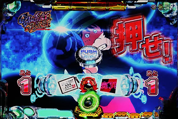 ボタンを4回PUSHして、チャンス演出を獲得。最大4個獲得できる。