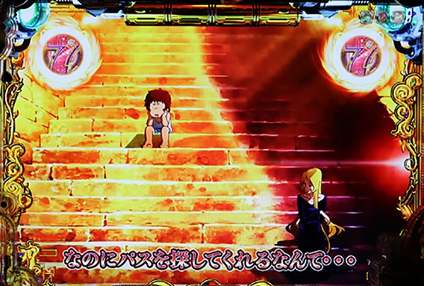 999ロゴと踏み切り役モノの同時作動から発生する回想演出。大チャンス!