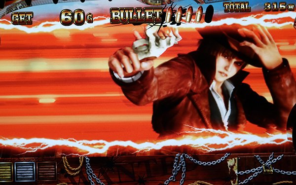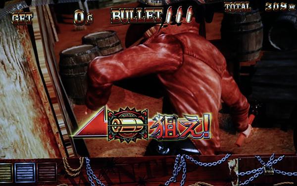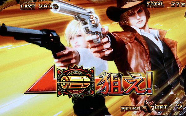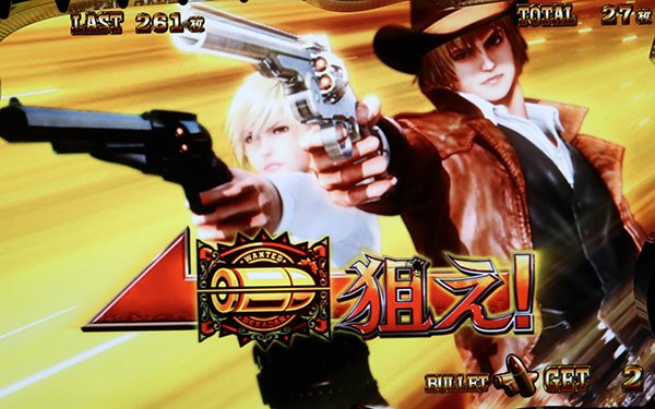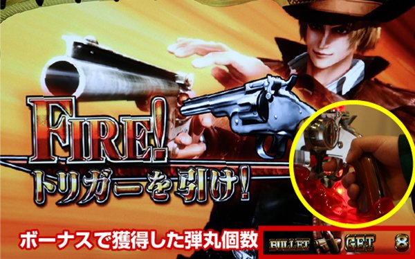 BIG終了後は獲得した弾丸を1発ずつ使い、筐体右側のリボルバー役モノで抽選結果を告知。通常時はCZとARTのダブル抽選をおこなっているため、複数ストックの可能性も十分にある。