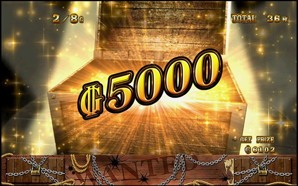 毎ゲームガチの勝利抽選をおこない、勝利時は対戦相手に応じた賞金を獲得! ボスであるグラッチの獲得賞金は100000=ゴールド袋10袋獲得!