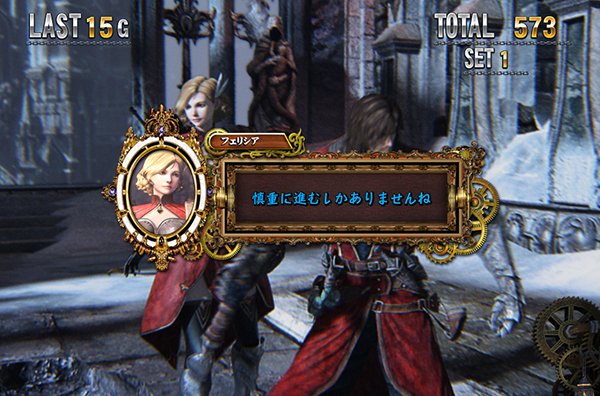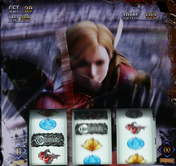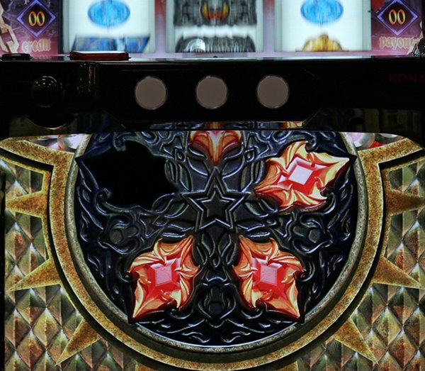 ボーナス+ARTの王道スペックとして「悪魔城ドラキュラ Lords of Shadow」が登場。 通常時はレア役を契機にCZやARTを目指すというわかりやすいゲーム性となっている。 ART中はレア役でBAR揃いが抽選され、BARが揃えばセット数ストックに期待できるストックバトルに突入。このストックバトルを契機にセット数ストックや特化ゾーンなど、さまざまな出玉のトリガーが展開していく。 |
