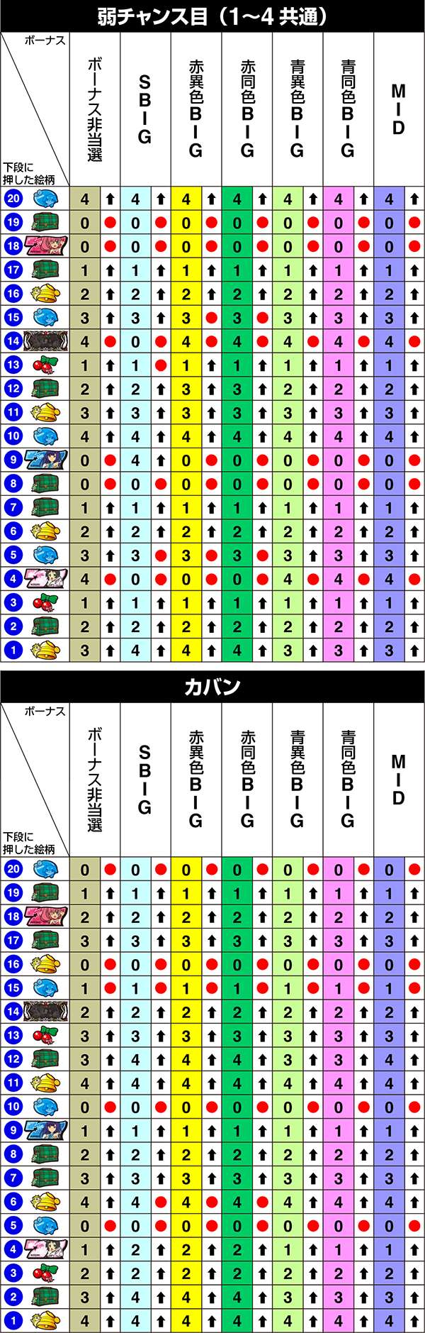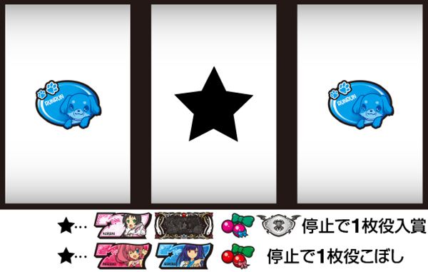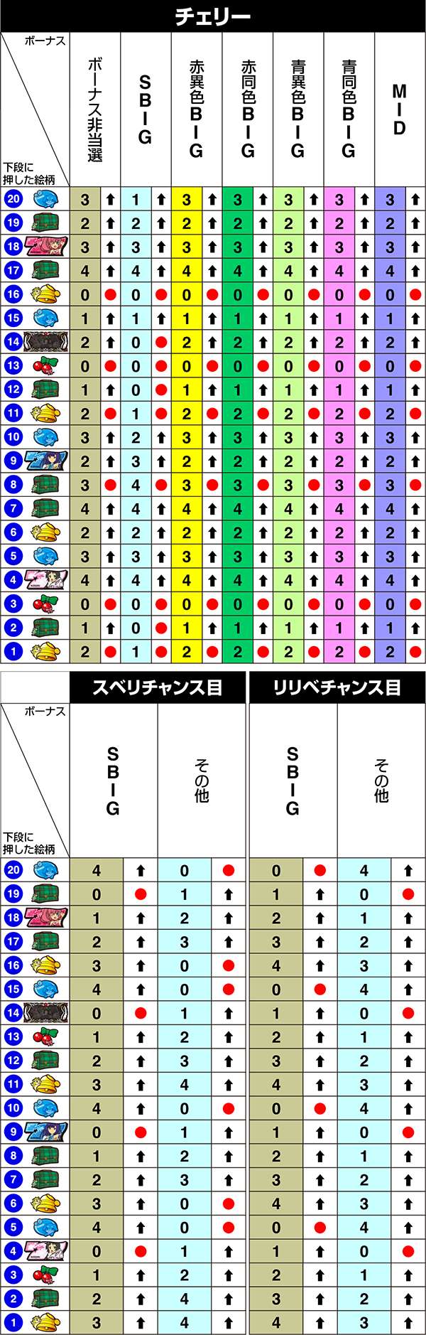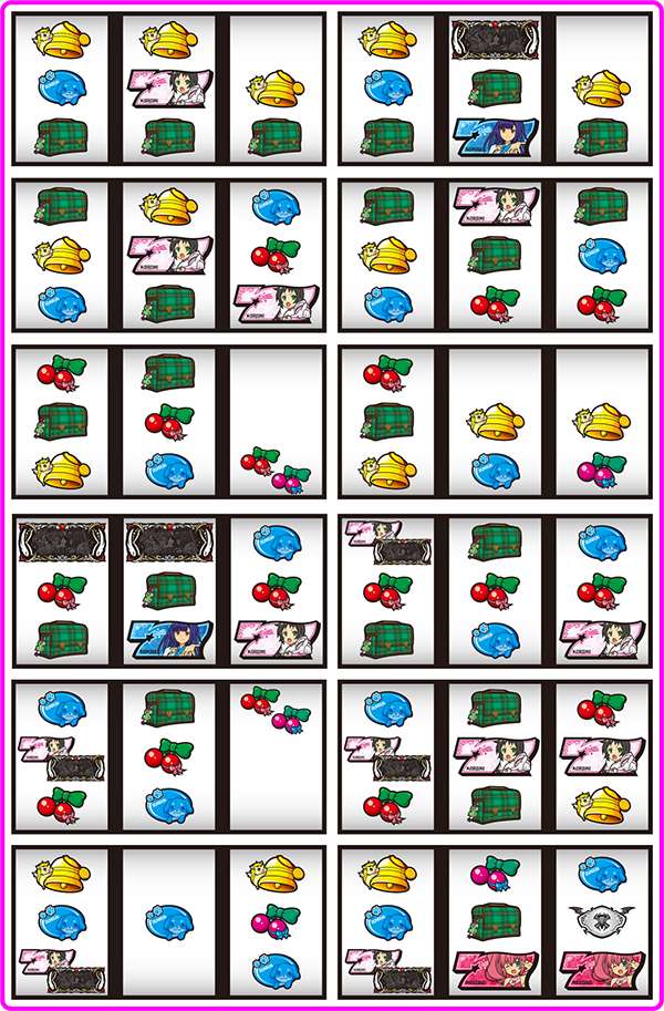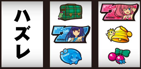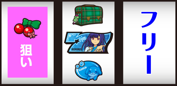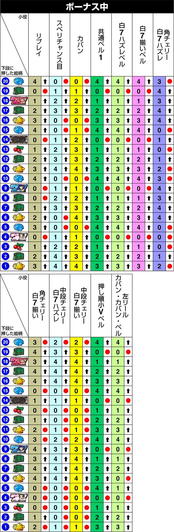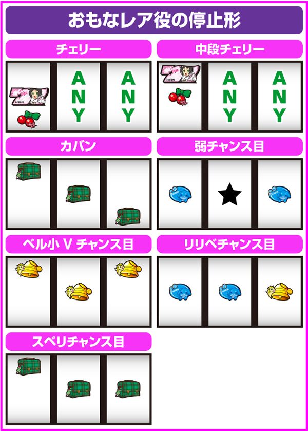 ※レア役…リリベチャンス目、ベル小Vチャンス目、スベリチャンス目、チェリー、カバン