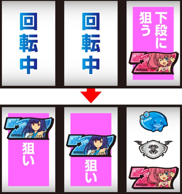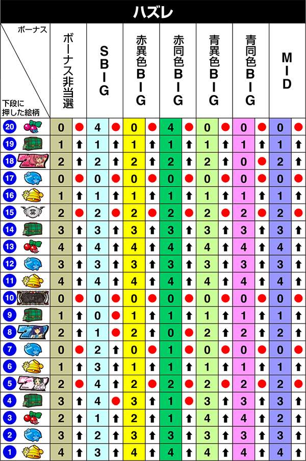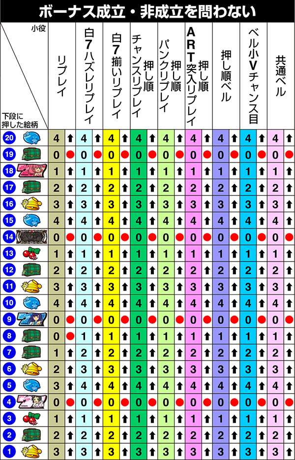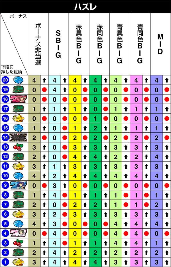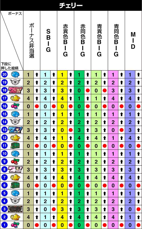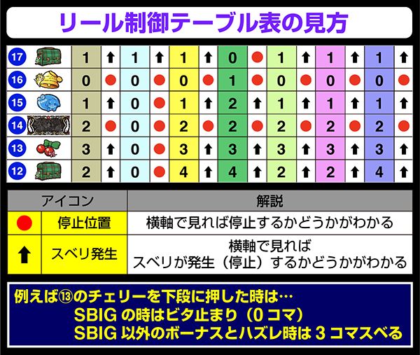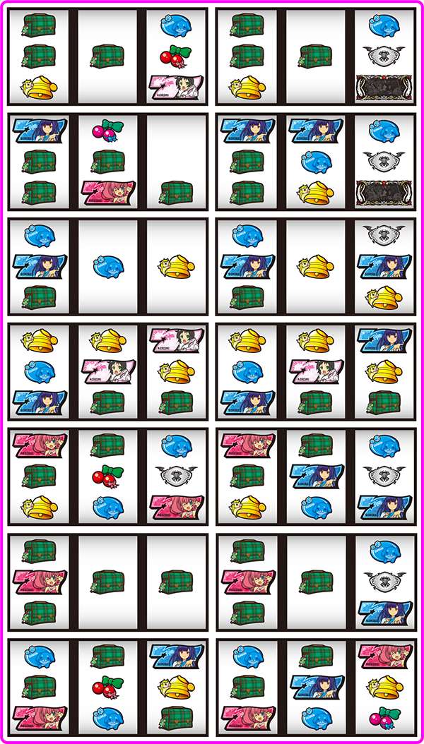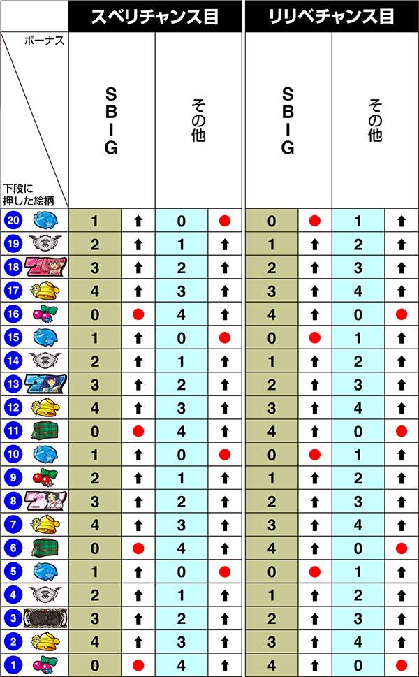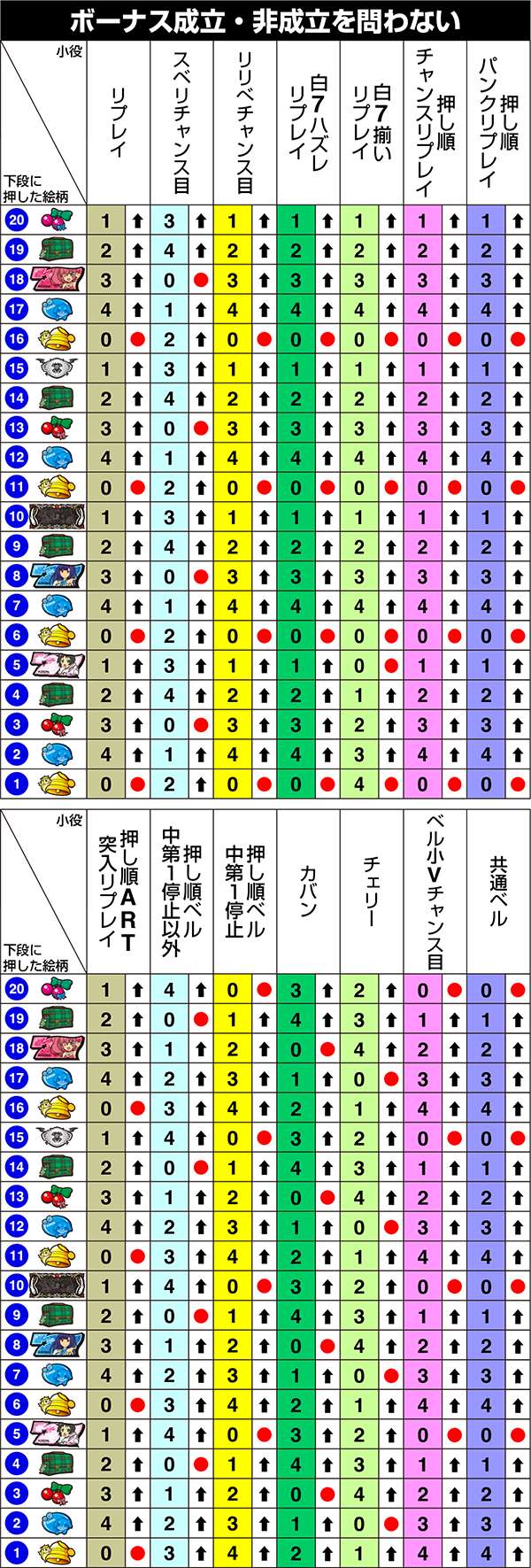 ※レア役…リリベチャンス目、ベル小Vチャンス目、スベリチャンス目、チェリー、カバン