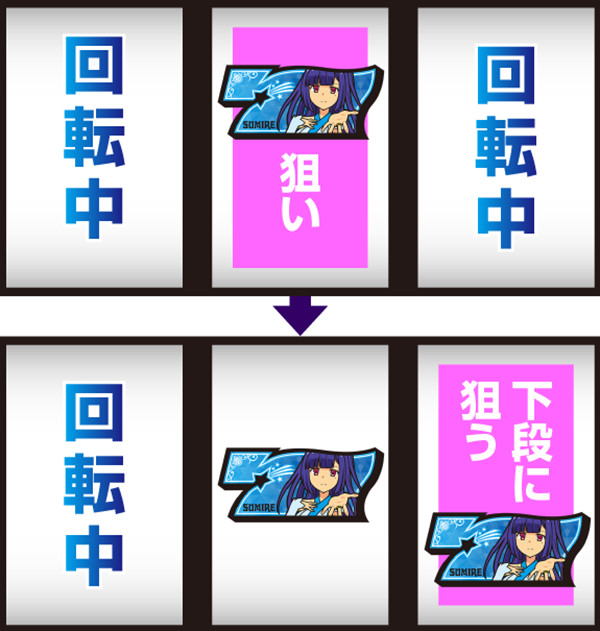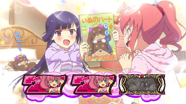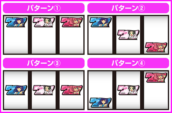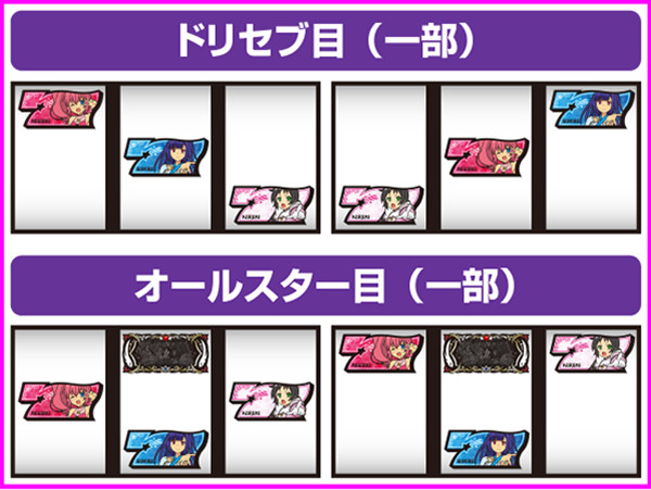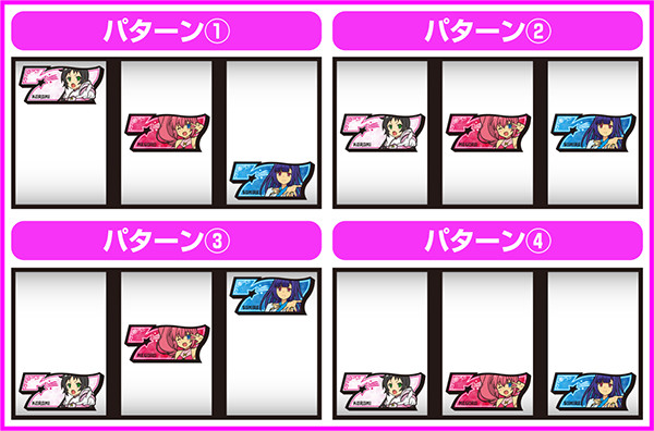 白7が揃えばART確定となるが、揃わなかった場合はキャラのセリフの文字色でストックの示唆をおこなっている。