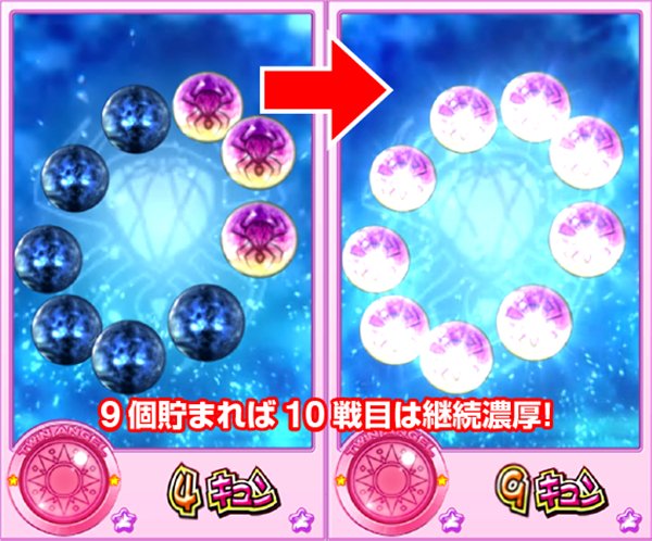 ラブリーBIGは変身チャレンジの変身パターンの組み合わせによって、ストック個数の示唆をおこなっている。