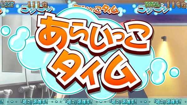 おんせんBIG中のあらいっこタイムは白7揃いチャンス予約高確率状態が確定となり、7揃いの期待度がアップする。
