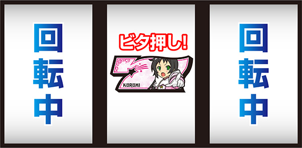 みるくるBIG中の「気合いを入れろ」は白7揃いチャンス予約状態が確定となり、次ゲームのレバーでガチ抽選をおこなう。