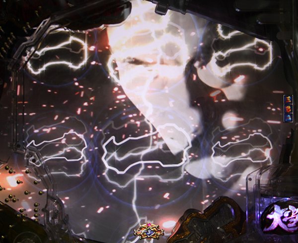左右の液晶に「激熱」と表示され、激しい音とともに台が震えるインパクト抜群の演出!