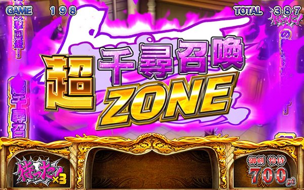 また、超千尋召喚に当選すれば再度3回までの無敵状態となるうえ、3回受けてからも約90%で継続。勝利後も継続するためARTロング継続の大チャンスとなる。