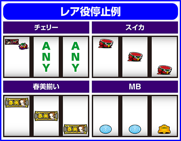 基本的にオールフリー打ちで取りこぼしはないが、左リール枠内にBAR(真宵)を狙うことで確定役の春美揃いをフォローできる。