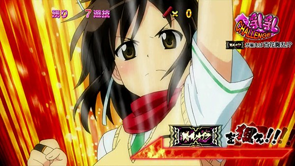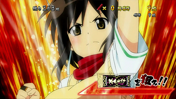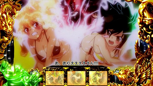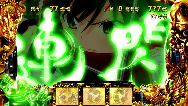 人気コンテンツの「閃乱カグラ」がボーナス+ARTタイプとして登場。 通常時はCZとボーナスでARTを目指す。ボーナスは3種類あり、獲得枚数はBIGが252枚or153枚、REGは48枚となっている。 ARTは純増約1.2枚/G(ボーナス除く)、初期ゲーム数50G以上のゲーム数管理タイプ。レア役によるARTゲーム数上乗せにボーナスを絡めながら出玉を増加させていくゲーム性となる。 |