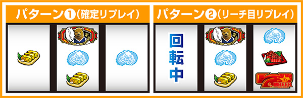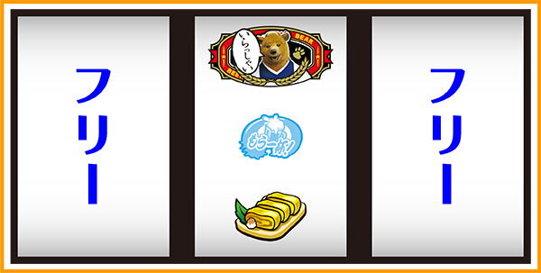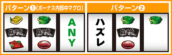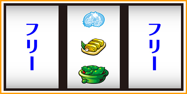 おもにボーナスと同時当選する小役はマグロ・枝豆・リプレイの3つ。なかでもリプレイが同時当選のメインとなっており、ガタガタ演出中にリプレイが3連すればボーナス期待度が40%以上になる。