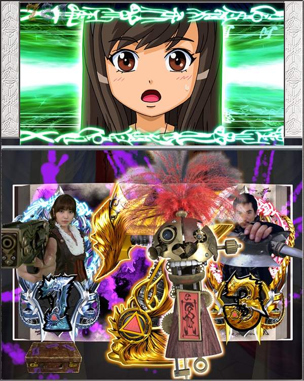 ボタンPUSHで3D透過液晶にアイテムが出現。牙狼斬馬剣やP.F.O.G.翔なら大チャンス!