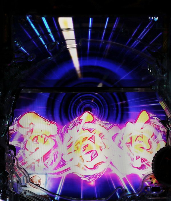 図柄停止時に台枠上の牙狼リールが白フラッシュ。