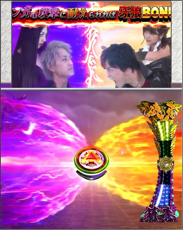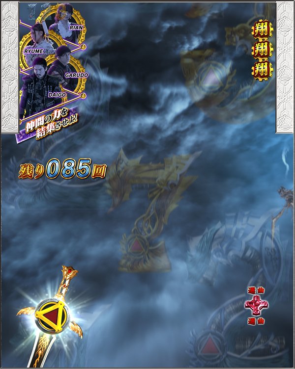 4曲目まで継続すると牙狼剣を押し込め演出に発展。