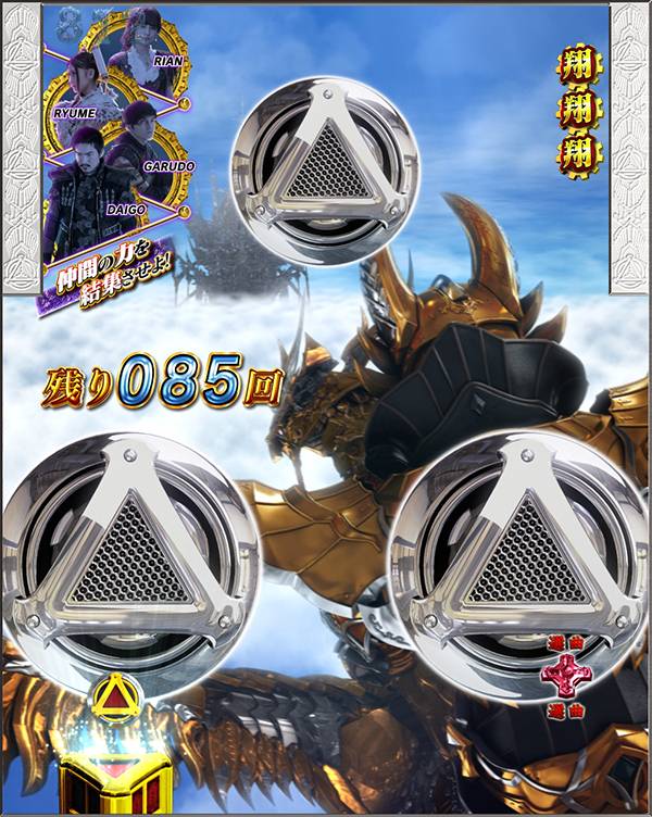 保留入賞時に台枠右に搭載されている翔撃牙狼剣のエンブレムが発光。