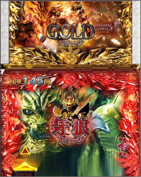 透過液晶の赤エフェクトや鋼牙図柄停止なら大チャンス。