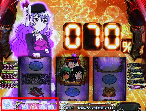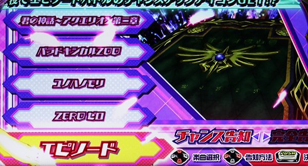 ART(アクエリオンライジングタイム)中に楽曲を選択した場合はST(スペシャルタイム)に突入しても楽曲が途切れずに流れ続ける。