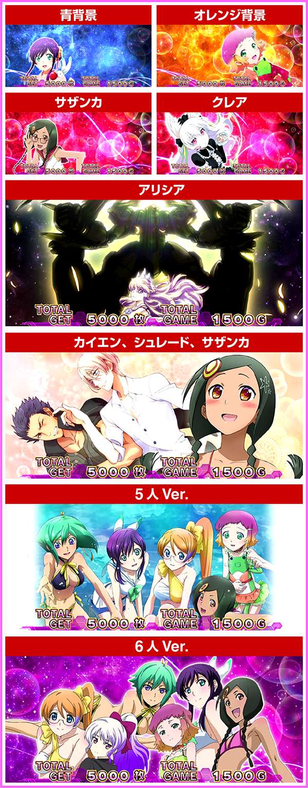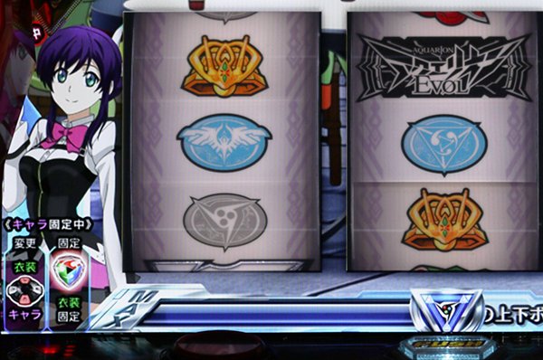 | 機種概要 | パチンコでも好評の「アクエリオンEVOL」が純増1.9枚/GのART機として登場。おもにCZを契機に突入するART「アクエリオン ライジング タイム」中はSTへの移行を目指し、STをループさせることによって出玉の増加を図る。高継続ST(85.6%〜98.6%)中は継続期待度を自力でアップさせられるため、どの状況からでもロング継続に期待が持てる仕様となっている。 |