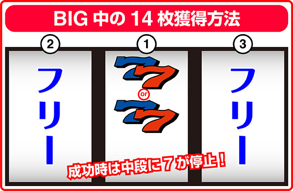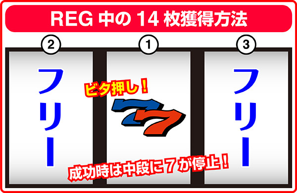 手順2…左→右リールの順にフリー打ちで消化すれば14枚獲得