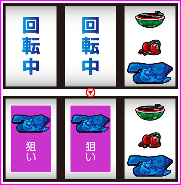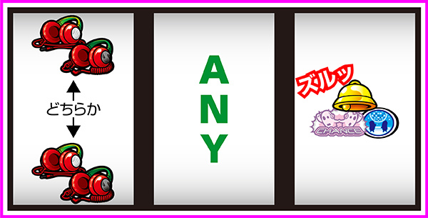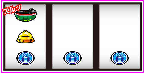 左リール上段にスイカまでスベった時にリプレイやベルが揃えばスベリリプレイorベル。