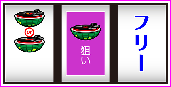 左リール中段までスイカがスベってくれば、スベリスイカ。