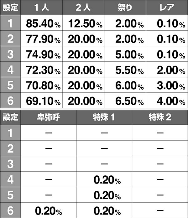 卑弥呼…設定6確定(1種類)