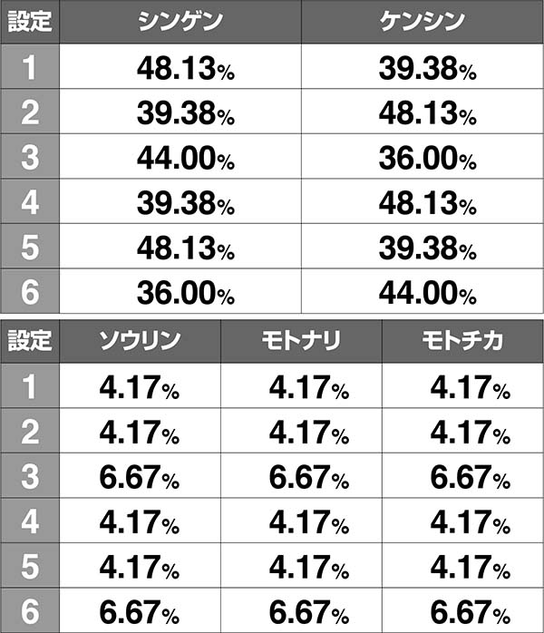 ソウリン、モトナリ、モトチカは設定3or6で出やすい!