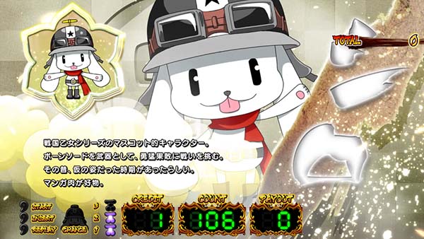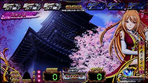 戦国乙女シリーズが初となるボーナス+RTタイプとして登場。 ボーナスの種類はBIG・REGの2種類で、BIG終了後に30G固定のRTに突入するシンプルなゲーム性となっている。BIG中は予告音発生時にビタ押しを1回(逆押しで左リールに白7)成功させれば最大枚数である311枚を獲得可能。 ボーナス当選時の告知も早く、基本的に難しい要素はないため、誰でも気軽に遊ぶことができる仕様だ。 |