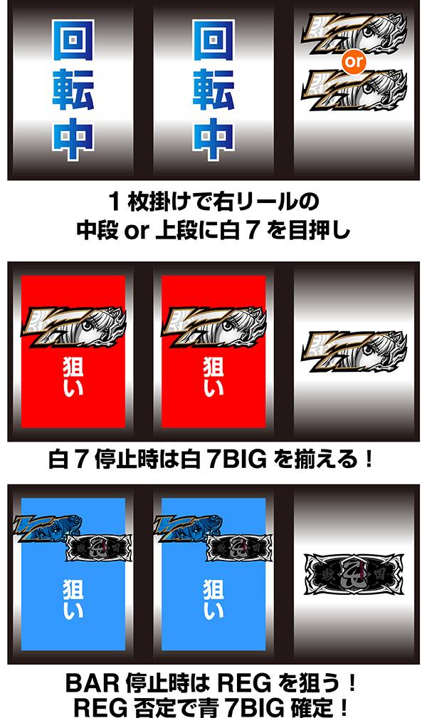 ※技術介入成功後の逆押し&ベル中段テンパイ時は白7付近を避けて左リールを停止