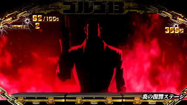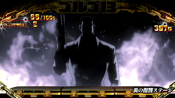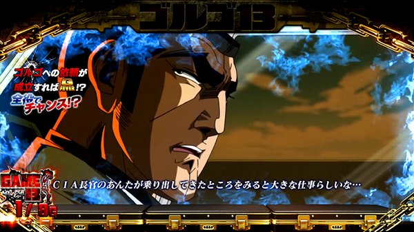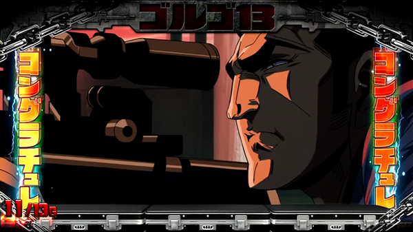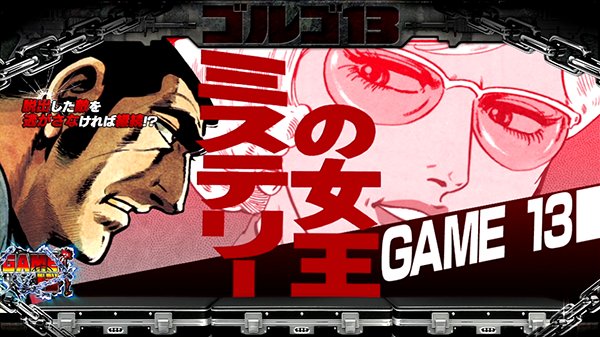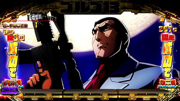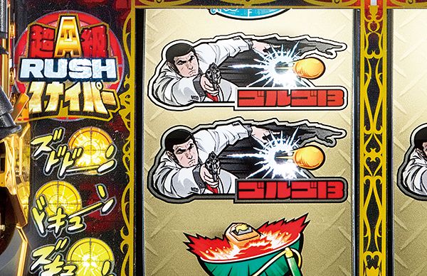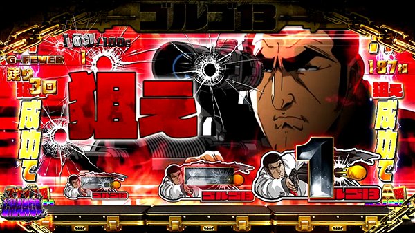 1Gあたりの純増約2.0枚、1セット100G+αのセット数管理タイプのART機として「パチスロ ゴルゴ13」が登場。 ART「G-FEVER」へのメインルートは、レア役などで抽選される自力チャンスゾーン「GAME13」。消化中はハズレを含む全役でARTが抽選される。 ART中は小役でセット数上乗せを獲得しつつ、セット数上乗せ特化ゾーンの「超A級スナイパーRUSH」を目指すゲーム性だ。 |