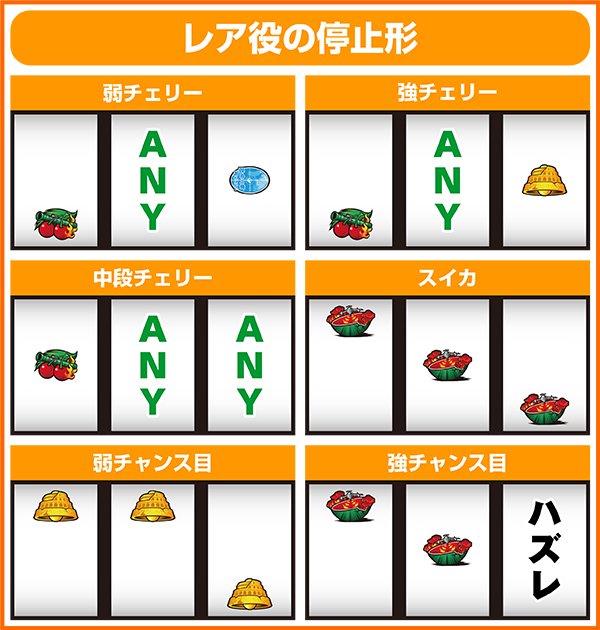 弱&強チェリーと1枚役(取りこぼしなし)には設定差が存在。いずれもカウントすれば設定推測要素となるだろう。