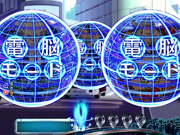 図柄停止時に図柄が電脳モードのエフェクトに包まれるなどから突入。ジャッジメント発展のチャンスとなり、超電脳モードなら激アツ!