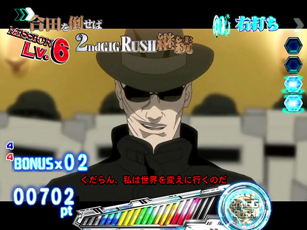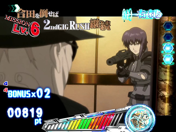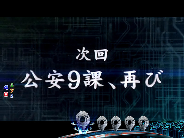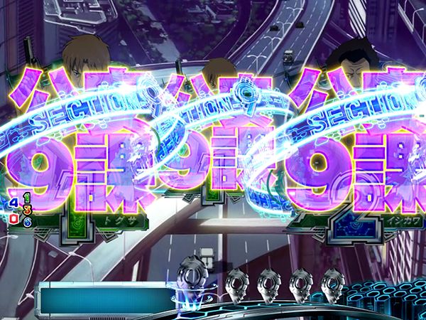 図柄停止時に公安9課の文字出現などから突入。図柄が高速変動し、続くほど期待度がアップ。また、継続時などに超SECTION9モードとなれば激アツ!