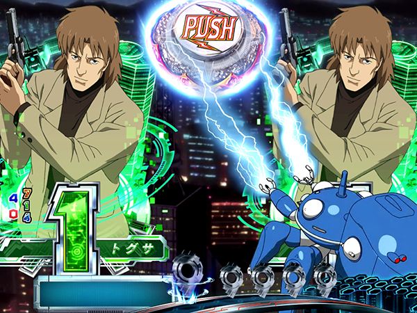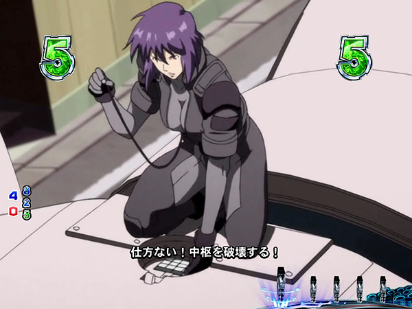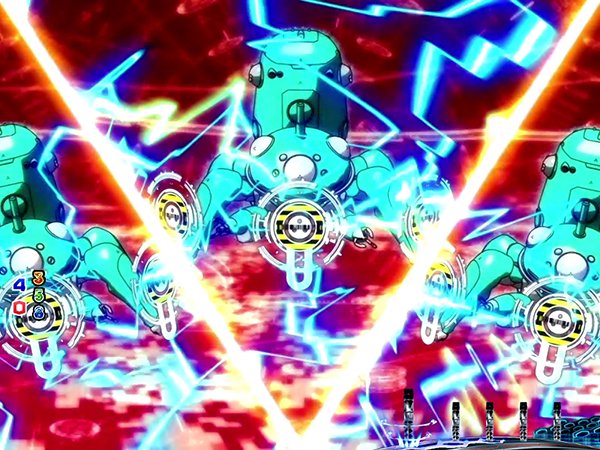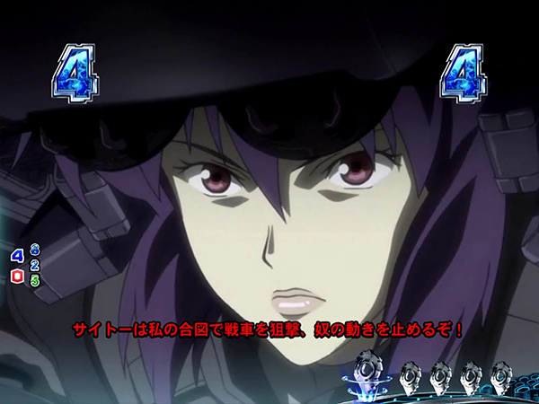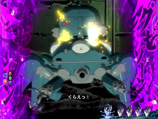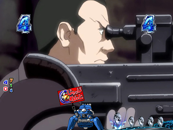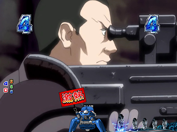 タチコマが持つプラカードの内容に注目。「発展」なら素子リーチやエピソードリーチなどに発展し、「熱」や「激熱」なら高期待度。そのほかにジャッジメントの発展を示唆する内容もあり。