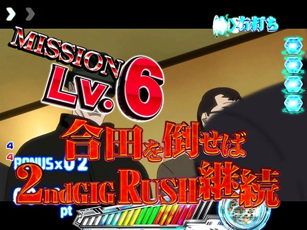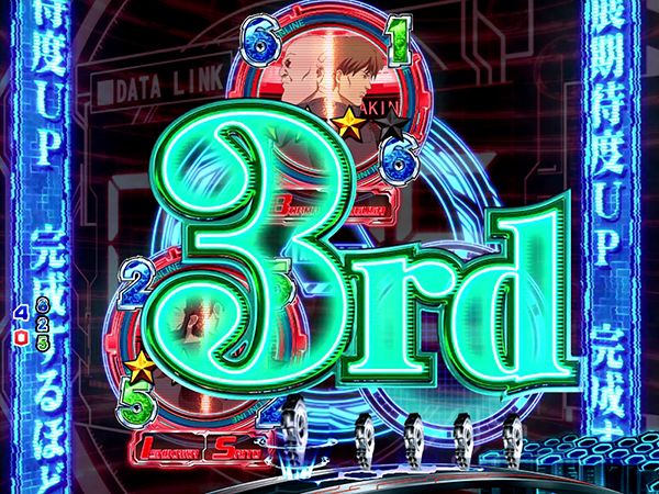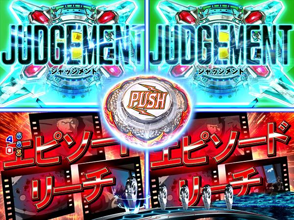 図柄揃いと役モノ大当りとなるジャッジメントルートを搭載した刺激的な1台。 2nd GIG RUSHは初当りの50%で突入し、V入賞で大当りとなる連チャンモード。レベルメーターが上がるほど継続のチャンスだ! さらに、RUSH中に通常大当りした場合は、保留が残っていればファイナルジャッジメントに突入。ファイナルジャッジメントは最大4回転のチャンスが得られる引き戻しゾーンとなっている。 |