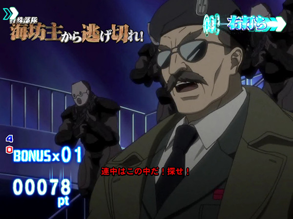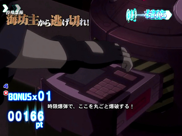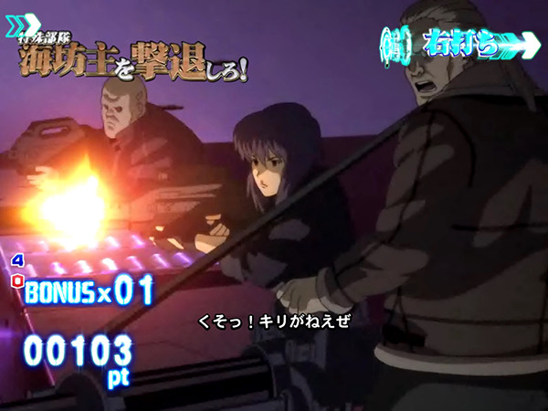 タチコマがボタンを捕まえるとエピソードリーチorジャッジメントに発展。タチコマの色は青のほかに、赤やキリン柄のパターンもあり。