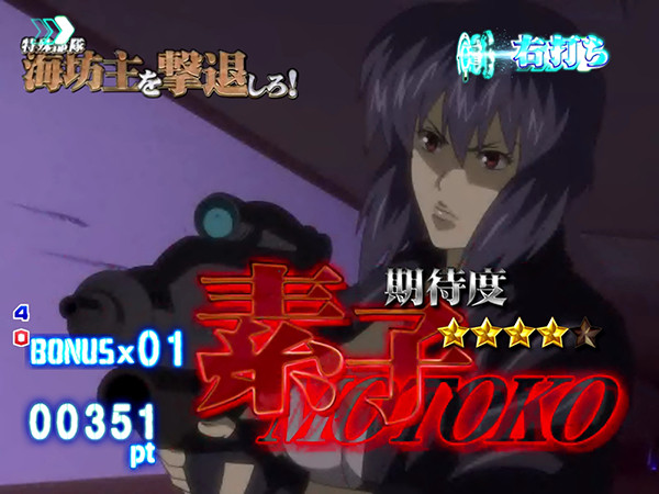 赤保留、素子、個別の11人、ギミック、笑い男(大)なら高期待度。変動中やリーチ中などにミニキャラの素子やタチコマが出現すると保留変化のチャンス。