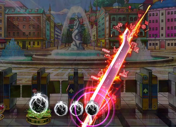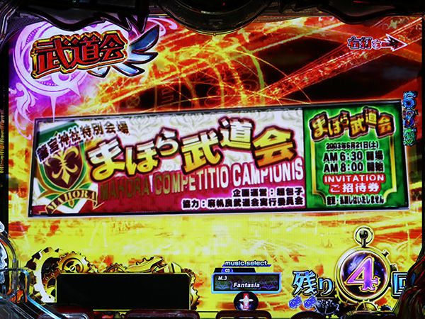 同色図柄停止などでチケットのピースを獲得。チケット完成でボタン演出に発展し、ロゴが落ちればバトルに発展。