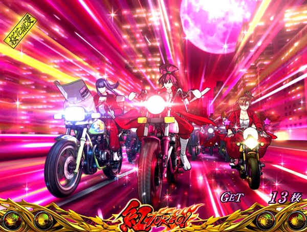 鬼浜のDNAを受け継ぐヤンキーシリーズ第2弾。 ART初当りは、レア役契機のCZやタイマンチャンスがメイン。液晶上に桜が舞う「紅テープモード」は小役不問でCZorARTを抽選。 ART「紅RUSH」は1セット50G+αのゲーム数上乗せ型。レア役などで上乗せモードとなる特攻殲滅モード移行抽選を行い、獲得した上乗せは一旦ストック。最終的に格上げ抽選などを行う。他にも「突ナビ」など上乗せ契機は多彩。 |
