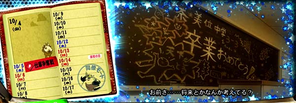 打ち上げボーナスは、消化中のイベント揃い時にモードアップ抽選をおこない、1<2<3の順に心技体メーターのポイント獲得率や能力開発モードの当選率が優遇されている。