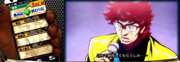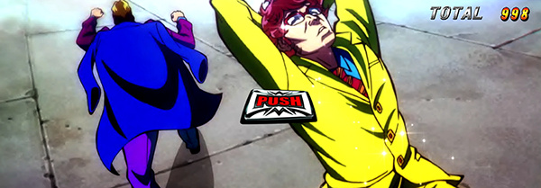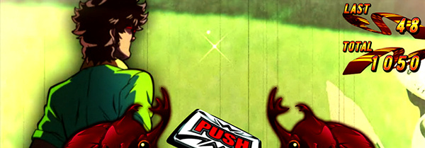 社長とのバトル中は、毎ゲーム出現するPUSHボタンを押すことで勝敗を告知。