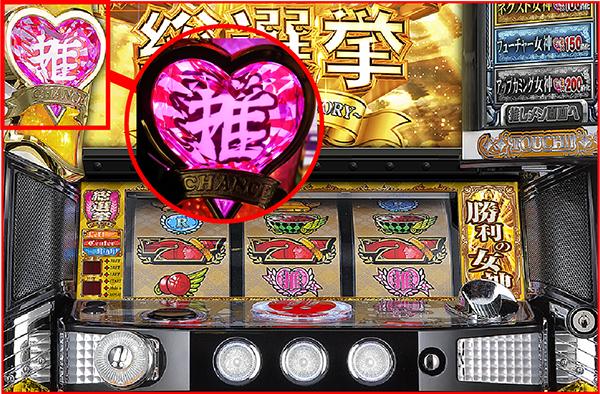 ART中は、推しポイント獲得時に筐体右側のサブ液晶にタッチすると、設定を示唆するボイスが発生。
