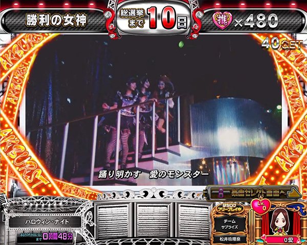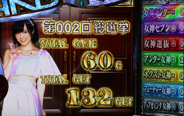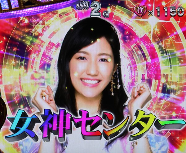 女神センターは継続が確定するだけでなく、次セットはレア役確率がアップする「AKBURST」と、獲得ポイントが倍以上になる「倍推しモード」に突入するといった特典もある。