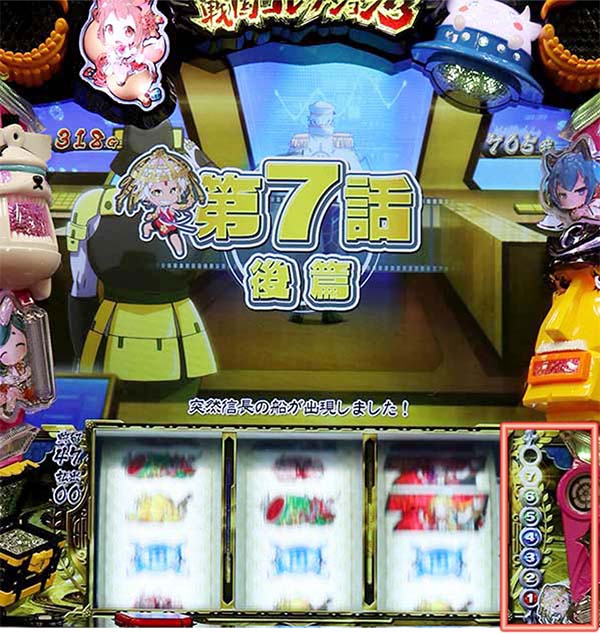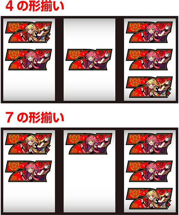 カットイン時に7が揃うたびにセット数を上乗せ。ダブルラインならストック2個、おなじみの「4・7の形」も健在だ。