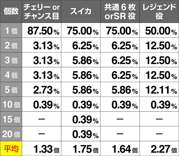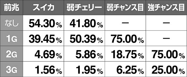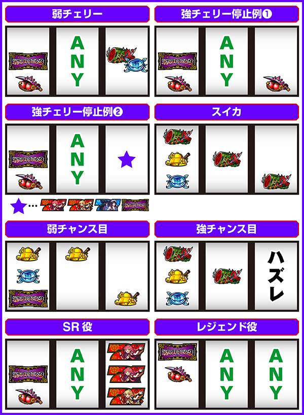 左リールにチェリー(BAR目安)を狙って、スイカが出現した時のみ右リールにスイカを目押し(中リールはこぼしナシ)。その他の停止形は基本的に中&右フリー打ちでOKなのだが、チェリー停止時にSR役を見抜きたい場合は右リールに3連赤7を狙おう(狙わなくても枚数的な損はない)。