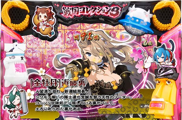 おなじみのシナリオ管理型のART機「戦国コレクション」シリーズの第3弾が登場。 今回もARTは8種類のシナリオで継続率が管理されている。 |