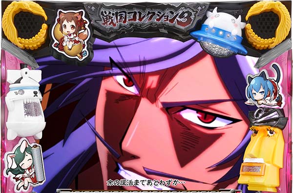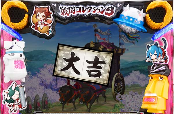 青異色の一部と青同色のボーナスはART当選のチャンスとなる修羅モードに突入。これまでの戦コレシリーズと同じく背景が変化するほど期待度アップとなり、ボーナス終了後は合戦演出に突入してARTの当否が告知される。