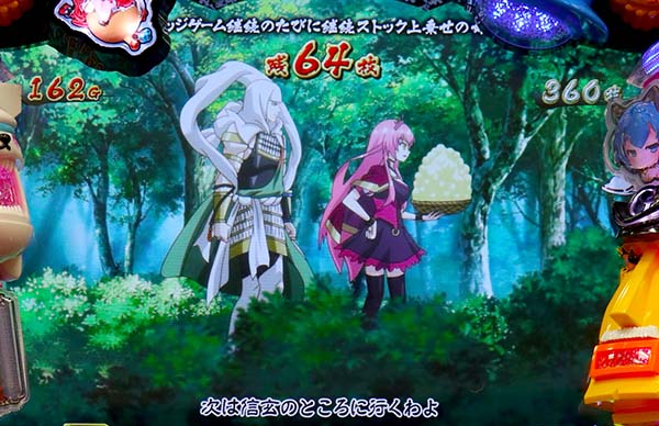 ボーナス後の合戦演出で勝てばARTに突入。対戦相手が乙女武将だった場合は期待度がアップする。本前兆中だった場合はART準備中と同じくARTのセット数ストックが抽選される。