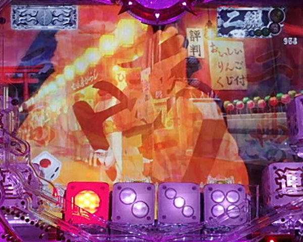 入賞時は液晶下の賽役モノが青などに点灯すれば先読み。該当保留になると液晶左下に表示される。賽役モノの色は保留移動時に変化する場合があり、変動中やリーチ中は降ってくる千点棒が刺されば色が変化。